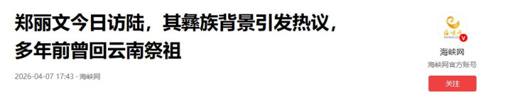 海峡网:郑丽文今日访陆,其彝族背景引发热议,多年前曾回云南祭祖