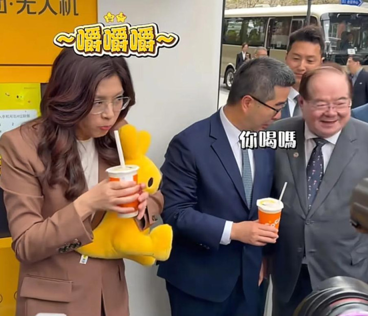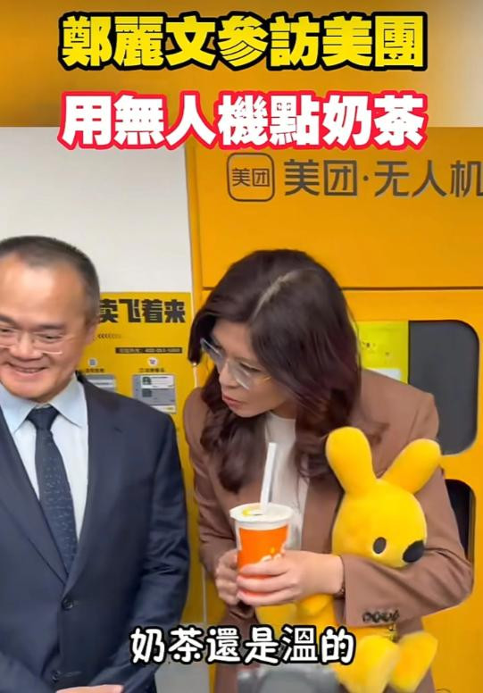 据悉,王兴接待郑丽文一行人,还现场演示用无人机点餐,郑丽文喝到奶茶的时候还是热的,同行的成员也品尝到了。
