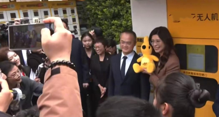 这个玩偶是一个黄色的袋鼠公仔,是王兴送给郑丽文的礼物,也是美团的吉祥物,没想到年过半百的郑女士爱不释手,一直拿在手里,还说要带回台湾。